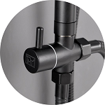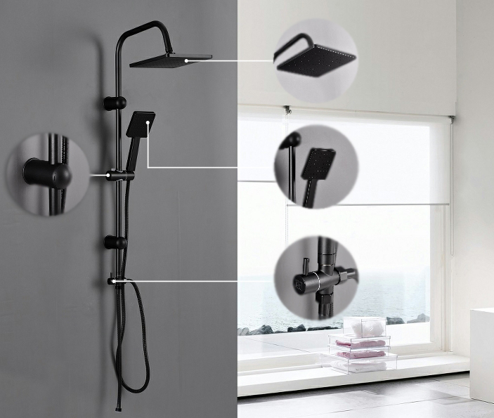 Az Altar Black zuhanyszett tartalmaz két állású funkcióváltót az ABS fekete kézizuhany és az 1,20 cm-es felső esőztető közötti váltás érdekében. A zuhanyszett teste rozsdamentes acélból készül, mely festett fekete színű. A két tartókonzol magassága állítható. A kézizuhany 1,5 m-es zuhanytömlővel rendelkezik.A zuhanyszettet a talajtól 85 cm-re ajánlott felszerelni.