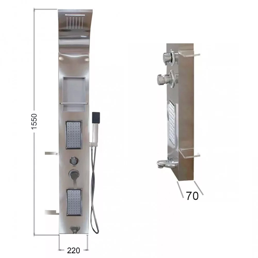 Az ANGEL hidromasszázs zuhanypanel egy lenyűgöző és praktikus megoldás a fürdőszobába, amely eleganciával és kényelemmel tölti meg a zuhanyzás élményét. Ez a zuhanypanel minden szempontból kiváló minőséget és fejlett funkciókat kínál, hogy a fürdőzés valódi élvezetté váljon. A zuhanypanel méretei 155 x 22 x 7 cm, ami lehetővé teszi a könnyű telepítést és a kényelmes használatot. Az ergonomikus dizájn és a méretarányos kialakítás gondoskodik arról, hogy ez a zuhanypanel harmonikusan illeszkedjen a fürdőszobai környezetbe, és helytakarékos megoldást nyújtson.