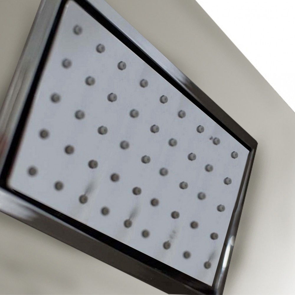 A zuhanypanelen egy felső esőztető is található, amely egyenletes és bőséges vízáramlást biztosít a test teljes körében. Ez a funkció egy kellemes és pihentető élményt nyújt, amely frissítő és feltöltő hatással van a testre és a lélekre. Az esőztető alatt való zuhanyzás luxus érzetet nyújt, és kényezteti az érzékeket. A zuhanypanelen egy kézi zuhanyfej is megtalálható, amely lehetővé teszi a vízsugár irányítását és a célzott tisztítást. Ez a funkció kiválóan alkalmas a test adott részeinek ápolására, valamint a zuhanyzás során történő öblítésre és tisztításra.