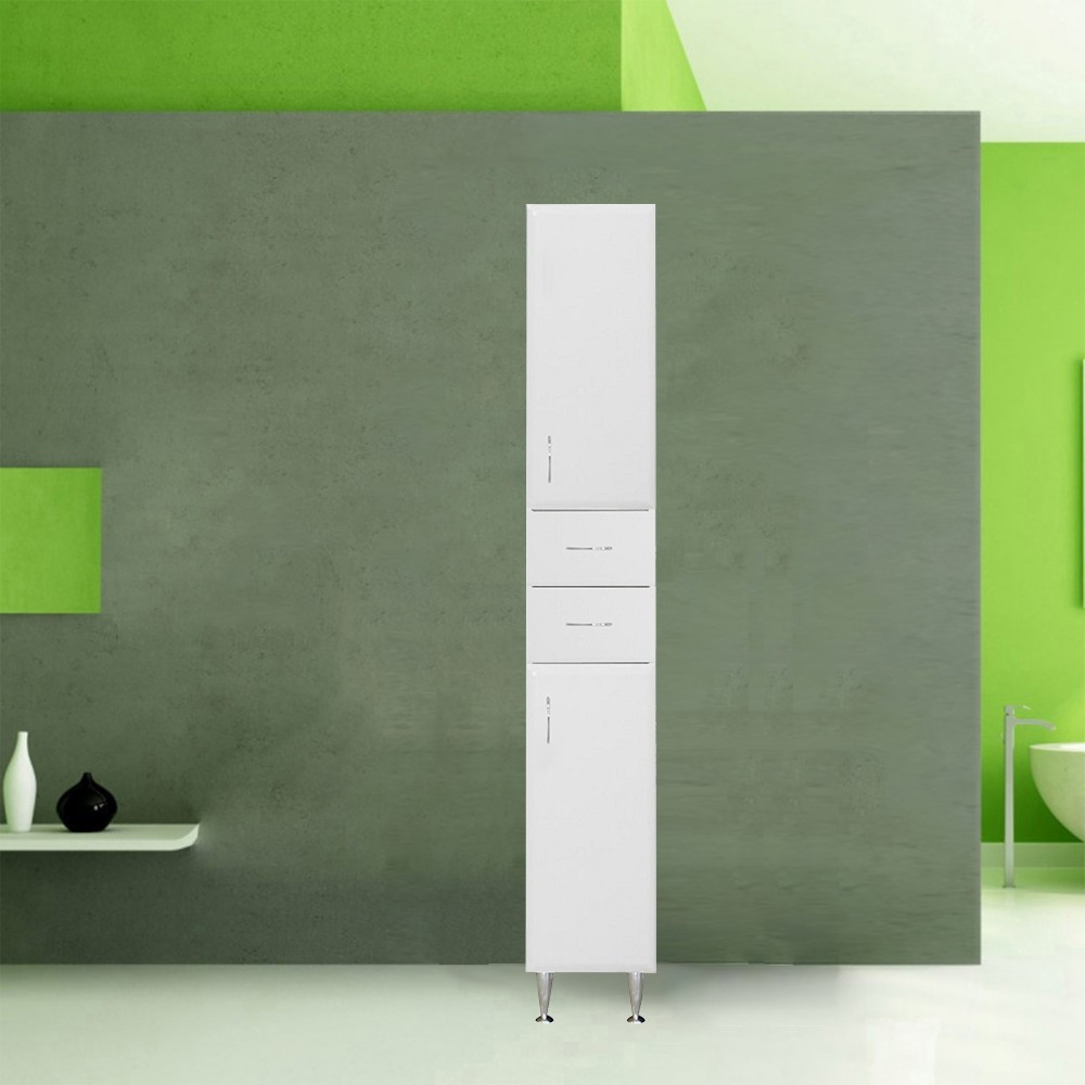 Bianca Plus 30 magas szekrény 2 ajtóval, 2 fiókkal, magasfényű fehér színben, jobbos
