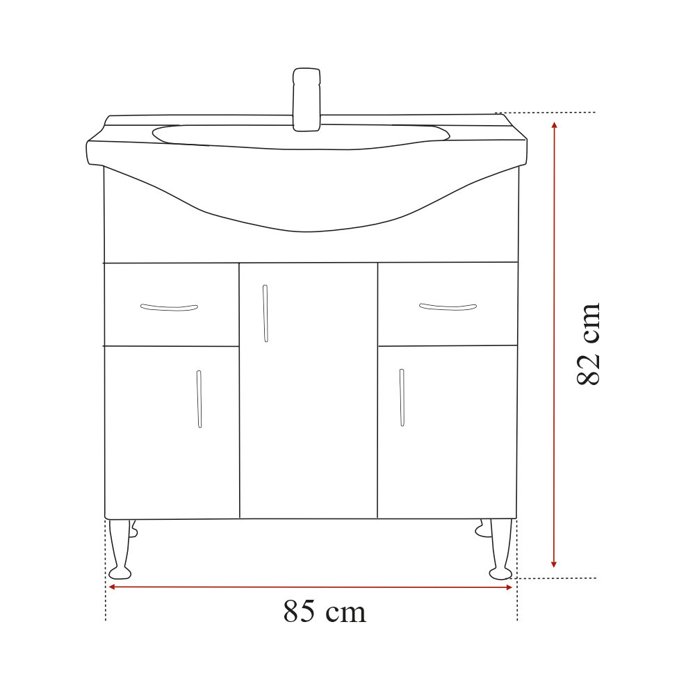 • Alsó rész mosdó nélkül : 80x82x33 cm (mosdóval : 82x85x48 cm )