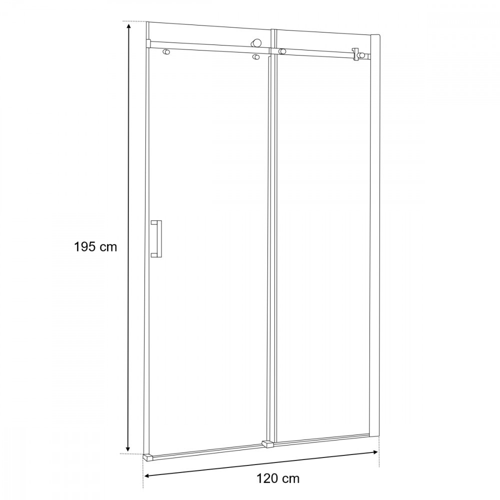 A termék 8 mm-es edzett üveggel rendelkezik. A zuhanykabin krómozott alumínium fali profillal van ellátva, amely elegáns megjelenést biztosít. Az cink görgők és görgősín garantálják a hosszú élettartamot és a gördülékeny működést. Az acél ajtónyitó kényelmes és strapabíró megoldás. A fali profil állítási lehetősége 10 mm, ami segíti a könnyű beállítást a telepítés során. A belépési méret 55 cm, a teljes méret pedig 120x195 cm.