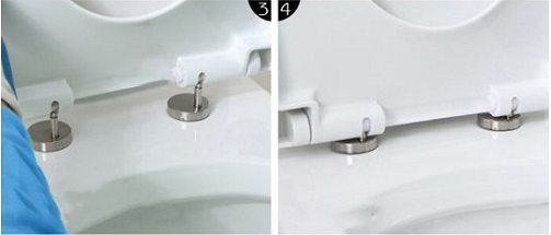 Nyomd le egy időben a jobb és bal oldali gombot az ülőkén. Igazítsd a két csatlakozót egyszerre a megfelelő helyre majd nyomd le az ülőkét.Rögzítsd a wc ülőkét.