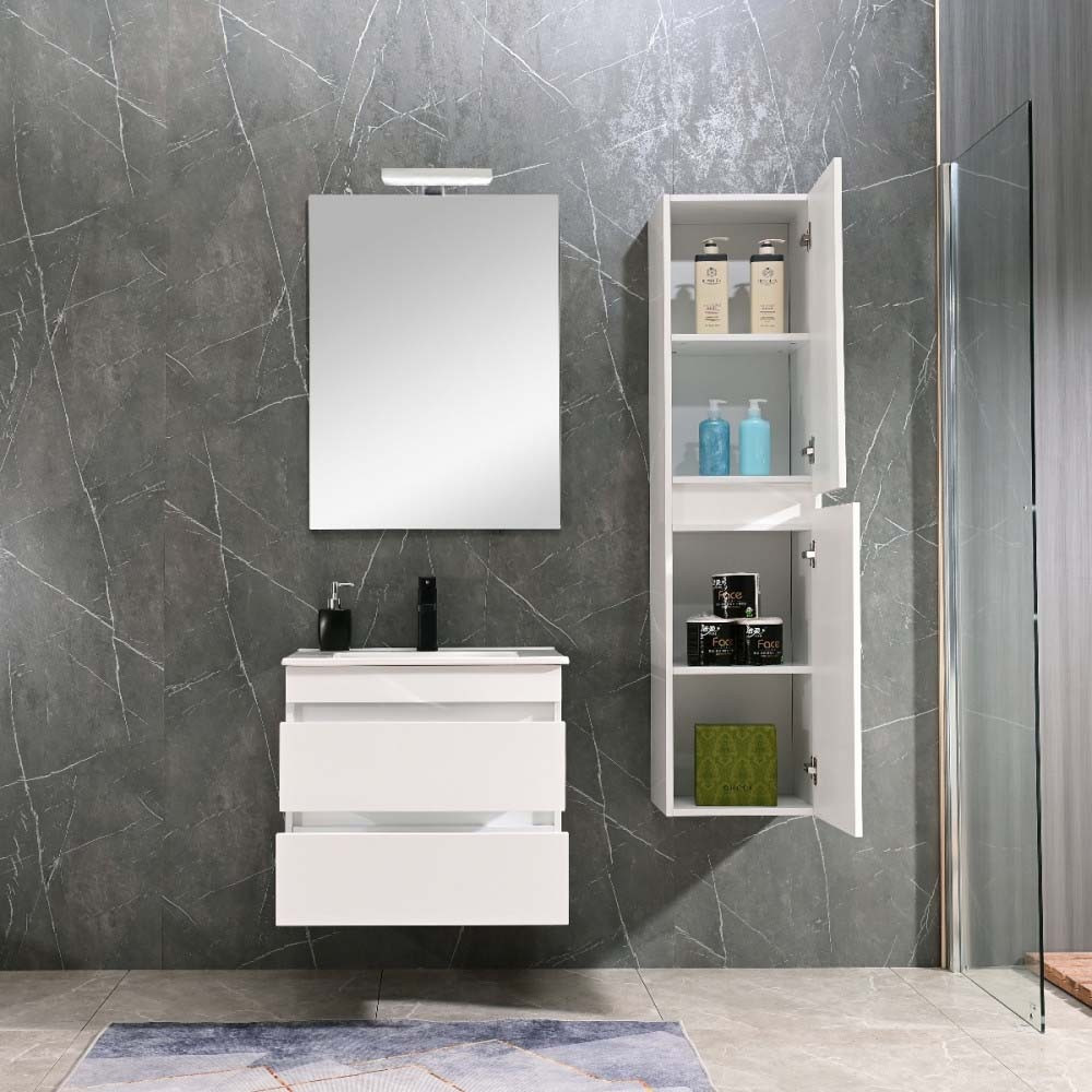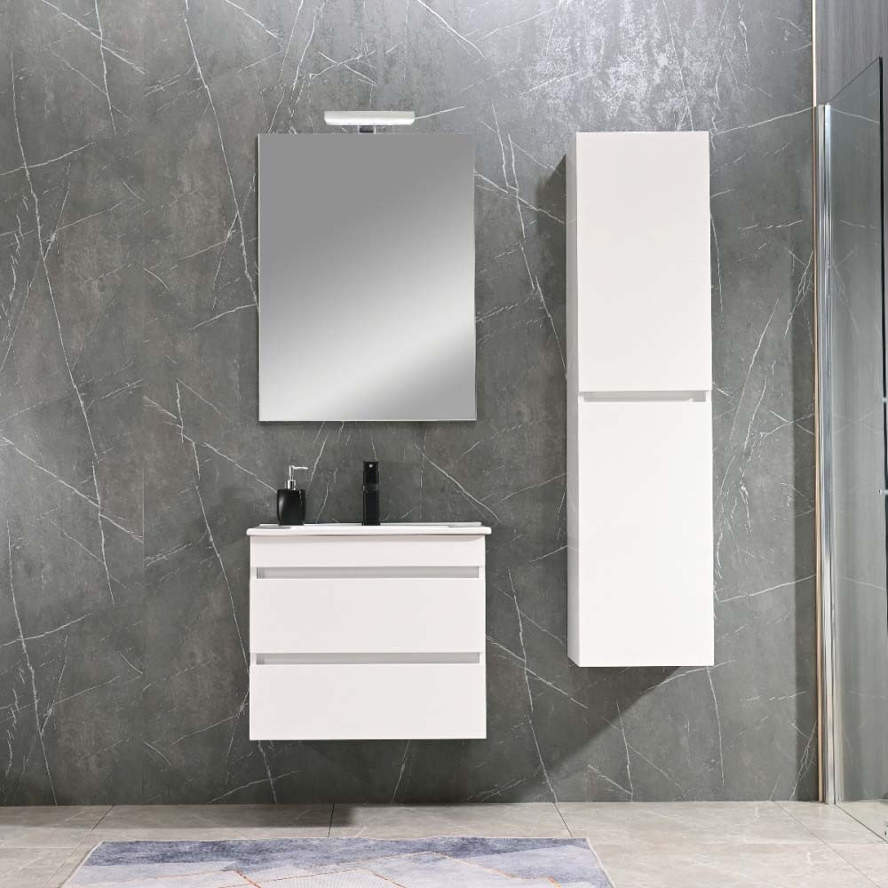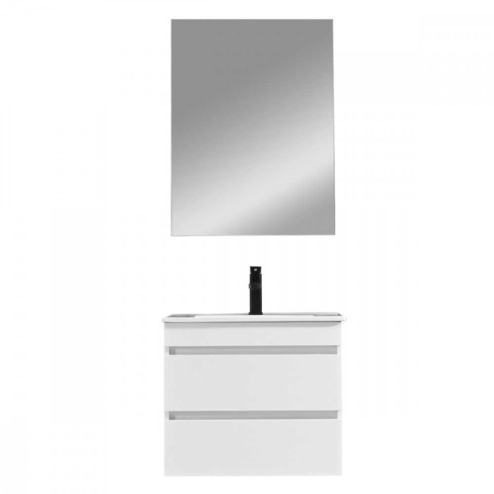 Cube Fürdőszobabútor 60 cm kerámia mosdóval (2 fiókos) tükörrel 60x80 cm magasfényű festett fehér