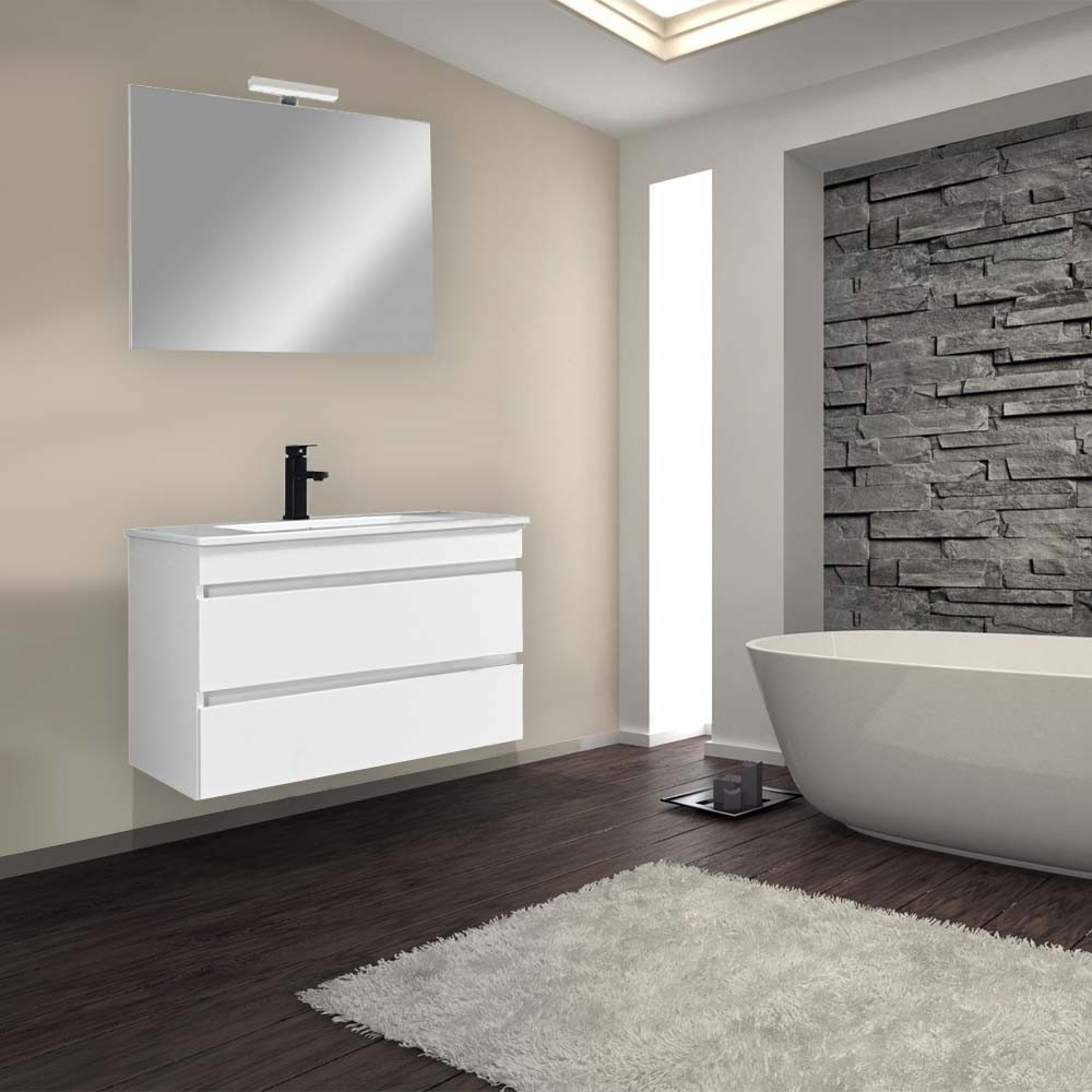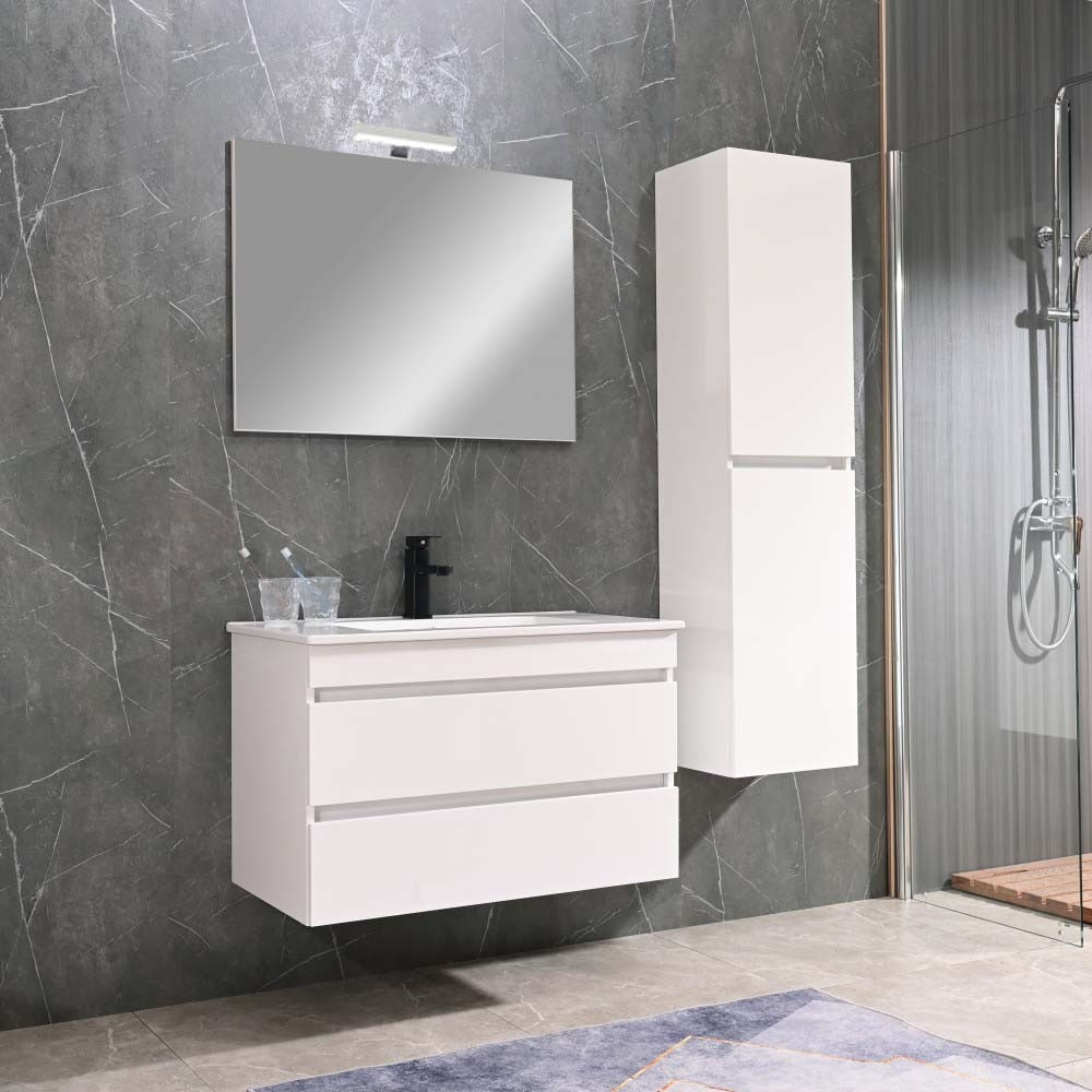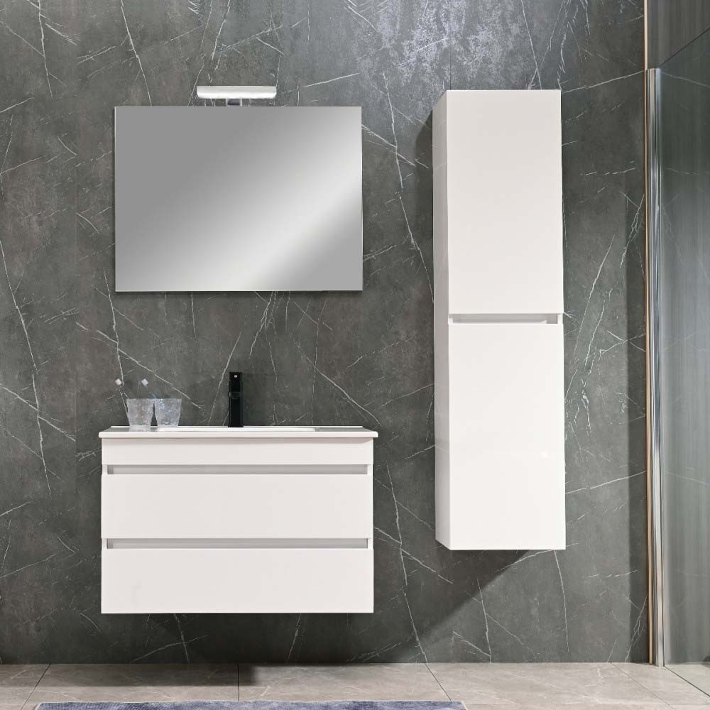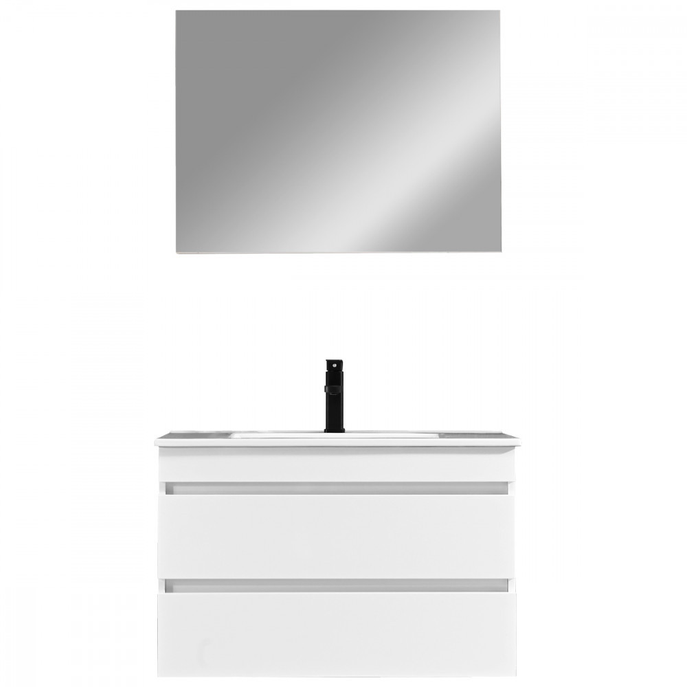 Cube Fürdőszobabútor 80 cm kerámia mosdóval (2 fiókos) tükörrel 60x80 cm magasfényű festett fehér