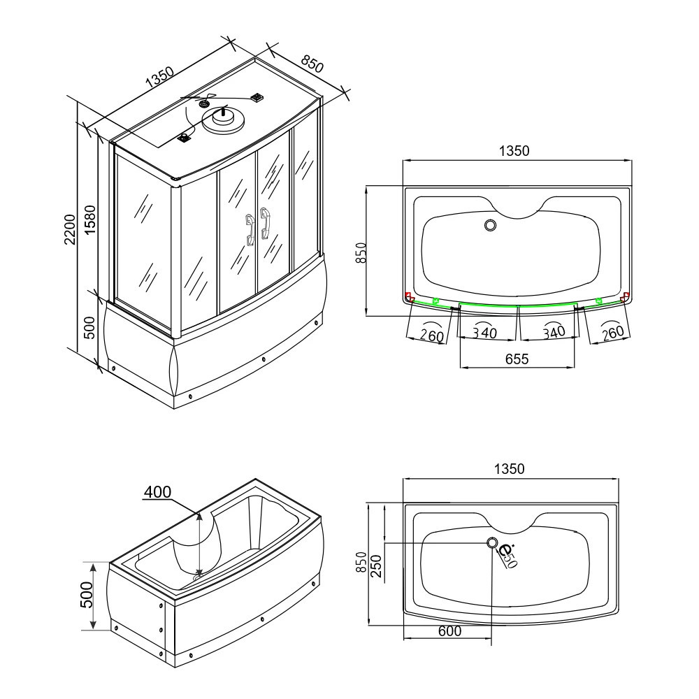 Emilia 135 Hidromasszázs Kádkabin elektronikával Black