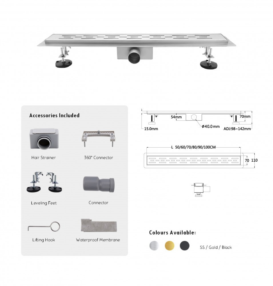 A Flow prémium rozsdamentes acél zuhanyfolyóka tökéletes választás fürdőszobájba. Rozsdamentességének köszönhetően nem szineződik el és éveken keresztül használhatjuk problémanetesen. Több méretben is kapható a termék.