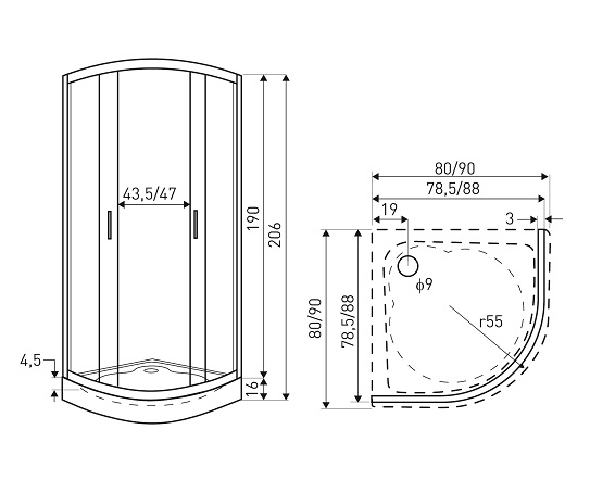 A zuhanykabin 4 mm-es biztonsági üveggel van ellátva. A zuhanykabin 80x80x190 cm. Aluminium króm profilokkal rendelkezik. Dupla görgős ajtókkal van felszerelve.