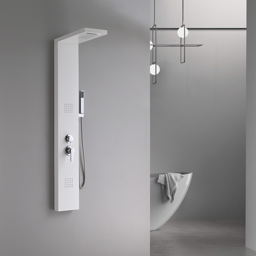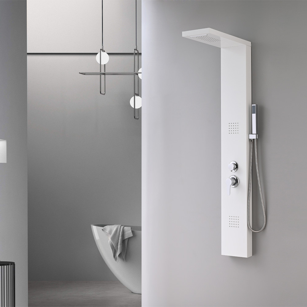 A Malaga White hidromasszázs zuhanypanel egy lenyűgöző és modern megoldás a fürdőszobákban, amely luxus-élményt nyújt zuhanyzás közben. Ezt a zuhanypanelt kifejezetten a kényelmre és relaxációra tervezték, miközben funkciókban gazdag és stílusos kialakításával a fürdőszobai enteriőr részévé válik. A zuhanypanel mérete 145x20x7 cm. Az anyaga festett alumínium ötvözet, ami erős és tartós, miközben könnyű súlyú és hosszú távon is megőrzi esztétikus megjelenését. Ez a modern anyagválasztás garantálja a zuhanypanel hosszú élettartamát.
