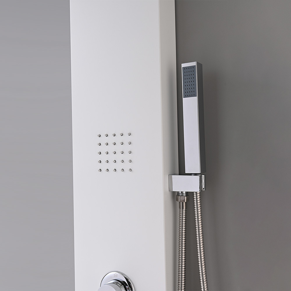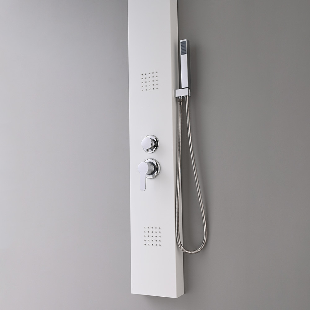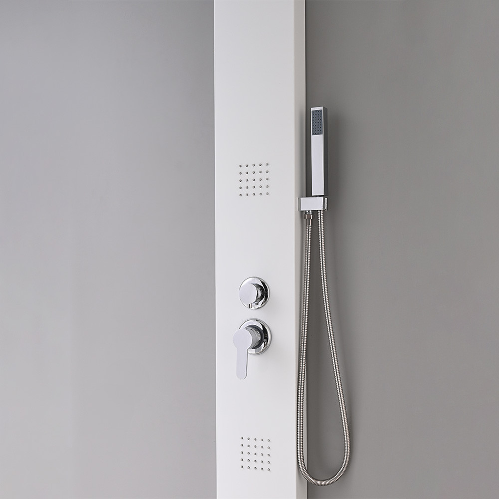 A zuhanypanelhez tartozik egy kézi zuhany is, amely lehetővé teszi a célzott vízsugarak irányítását és a test bármely részének alapos tisztítását. A rozsdamentes flexibilis zuhanygégecső hossza 1,5 m, amely elegendő mozgásszabadságot biztosít a zuhanyozás során. Ez a tartós és kényelmes zuhanykiegészítő megkönnyíti a fürdést és a tisztálkodást. A Malaga White hidromasszázs zuhanypanel sárgaréz betétes váltószeleppel és krómozott karral rendelkezik, amely lehetővé teszi a különböző víznyomás és hőmérséklet beállítását.