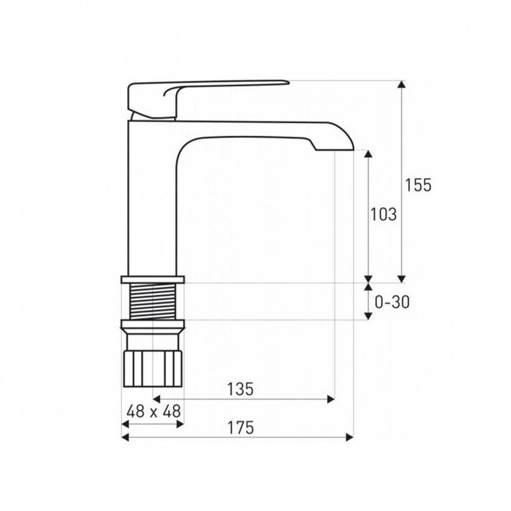 A modell sárgaréz, és 25 mm-es kerámiafejjel rendelkezik. A kifolyócső hossza 14 cm, magassága az alaptól 10,5 cm.