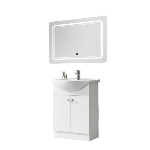 A szekrény 15 mm vastag MDF-ből készült, fényes fehér festéssel, amely letisztult és időtálló dizájnt nyújt. A strapabíró kerámia mosdó higiénikus, könnyen tisztítható felületet biztosít, a kétajtós tárolórész pedig ideális a mindennapi kellékek rendszerezéséhez.