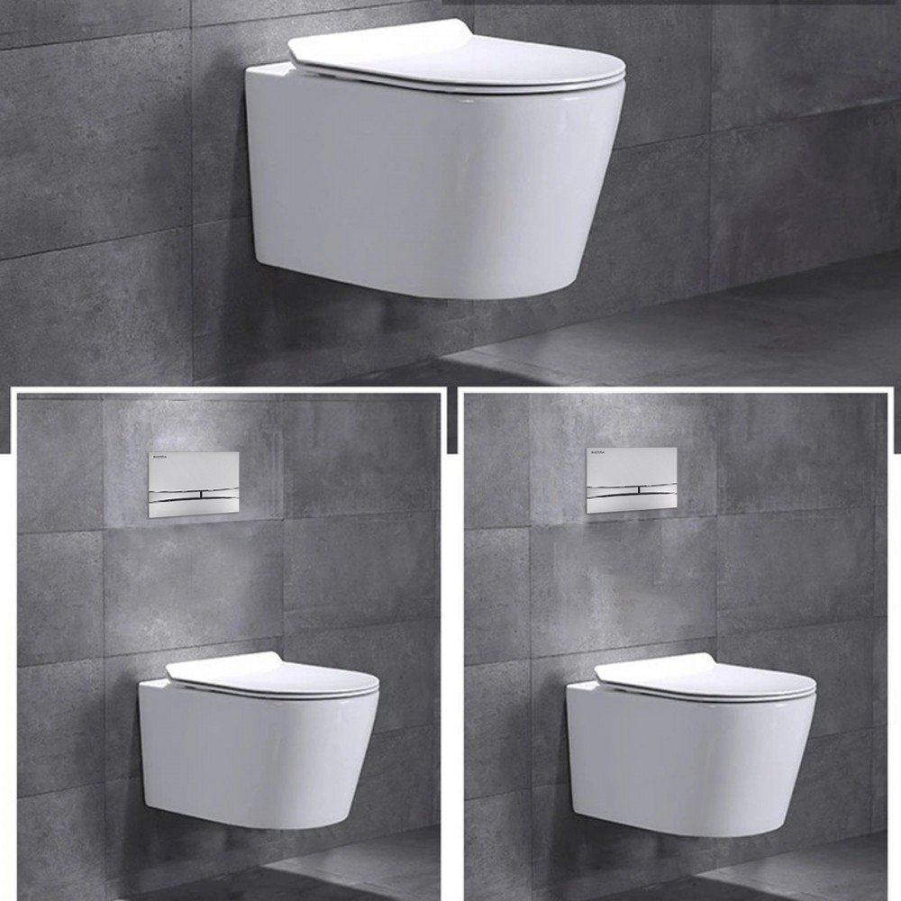 A készlet tartalma: 1 db rejtett rögzítőkeret tartállyal, 1 db Ride WC-csésze, 1 db wc ülőke (fehér, soft-close), 1 db dupla nyomógomb (króm)