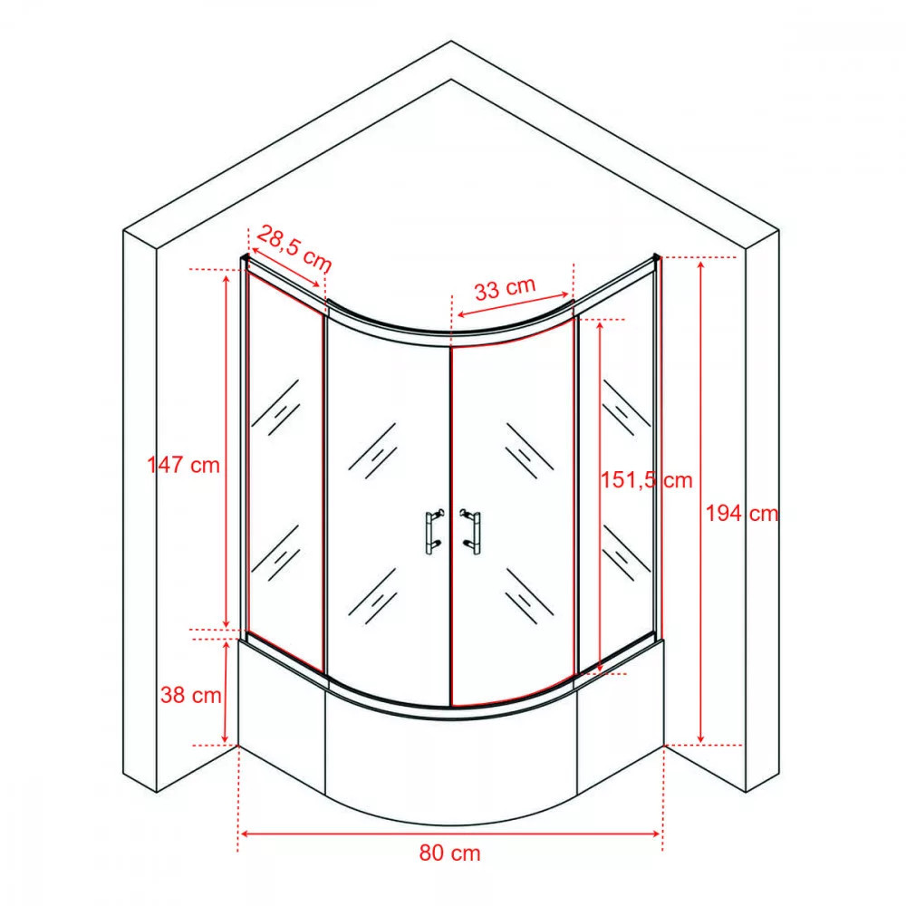Leziter SDEEP80 Spirit Deep 80x80 cm-es íves zuhanykabin, mélytálcával méretrajz
