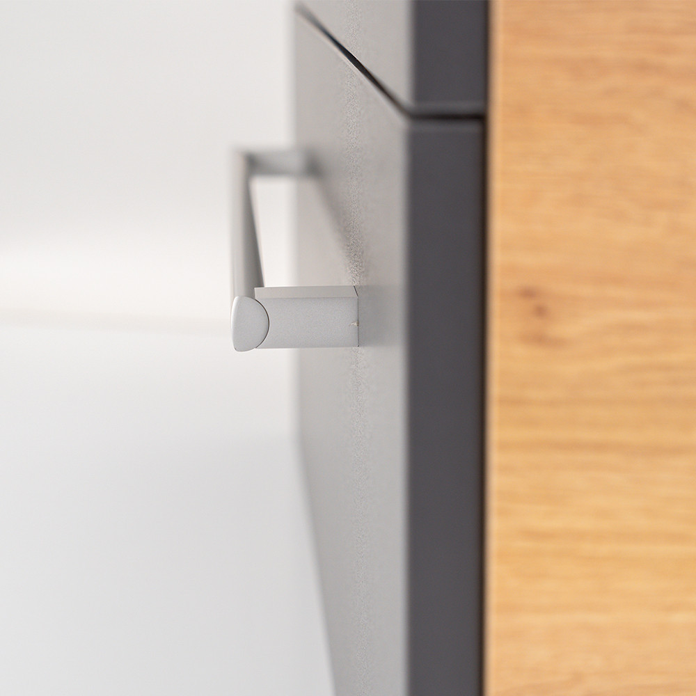 • Kifinomult színvilág: A tölgy korpusz és az antracit front kombinációja elegáns és időtálló megjelenést kölcsönöz a bútornak.