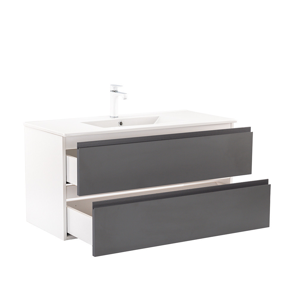 Vario Pull 100 komplett fürdőszoba bútor fehér-antracit - stílusos és modern fürdőszobabútor