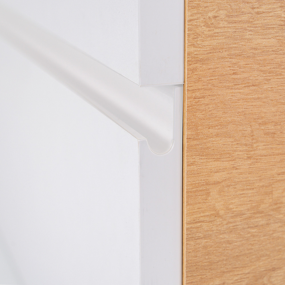 Az tölgy korpusz és a fehér front kombinációja elegáns és időtálló megjelenést kölcsönöz a bútornak.